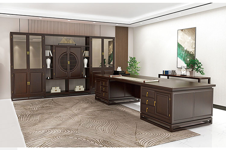 - JH-912书桌,新中式实木书桌乌金木书桌书柜书房家具