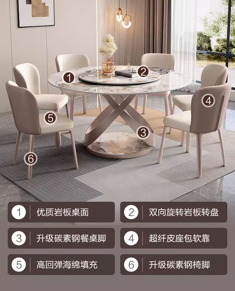 | CX-F3餐桌 | Φ1300*750 | 岩板+铁艺 | 2810 |