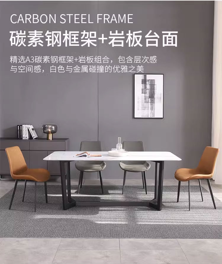 | CX-F8-1长餐桌 | 1600*800*750 | 岩板+碳素钢 | 2750 |