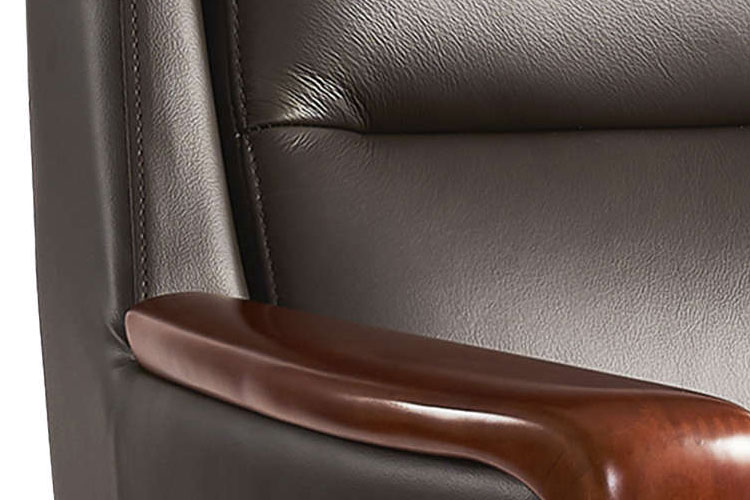 4、配件:2.0厚钢板飞机底盘,带逍遥、锁定功能;环保油漆优质实木扶手,红木油漆木面配优质喷涂铁架,优质升降气杆,过SGS检测标准,升降自如,上下20000次无损;优质PU静音轮,能减少噪音,耐磨,耐高温;带可躺功能,椅背多角度锁定