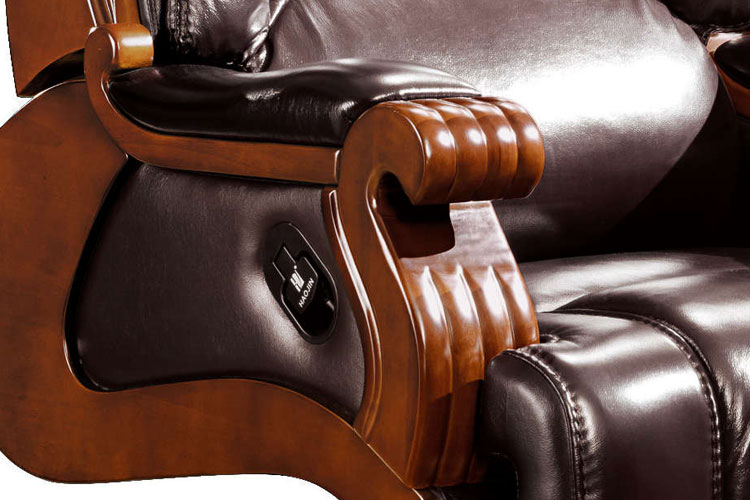4、配件:2.0厚钢板飞机底盘,带逍遥、锁定功能;环保油漆优质实木扶手,红木油漆木面配优质喷涂铁架,优质升降气杆,过SGS检测标准,升降自如,上下20000次无损;优质PU静音轮,能减少噪音,耐磨,耐高温;带可躺功能,椅背多角度锁定