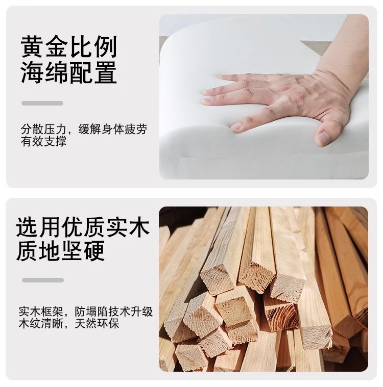 海绵:采用“聚沙”高密度纯海绵,软硬适中回弹性好,座感舒适。