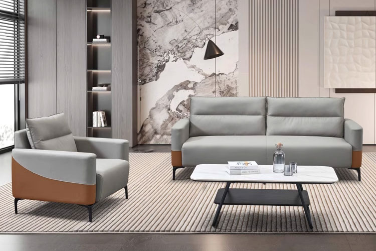 真表层:选用优质意大利“江华”牛皮覆面,厚度1.3-1.5mm,撕裂强求度>35N/mm,断裂伸长率<80%,颜色摩擦牢度>4.5/3.5(干/湿);