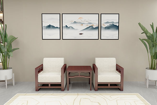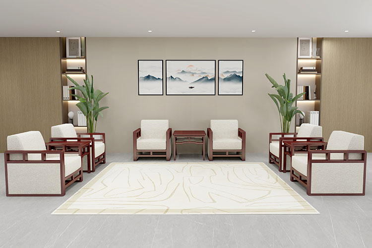 - 2314#新中式接待沙发,实木接待室沙发接待沙发