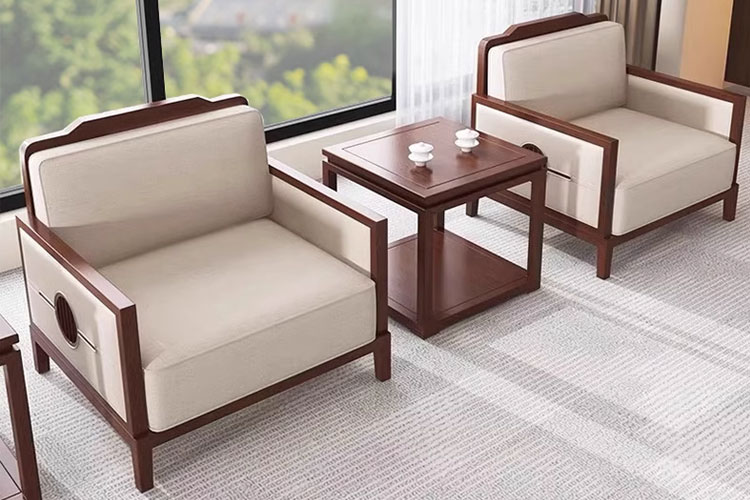 - 2314#新中式接待沙发,实木接待室沙发接待沙发