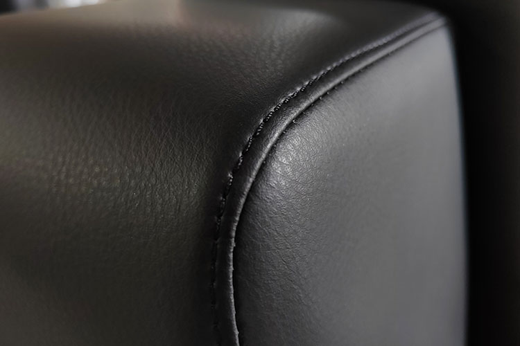 真表层:选用优质意大利“江华”牛皮覆面,厚度1.3-1.5mm,撕裂强求度>35N/mm,断裂伸长率<80%,颜色摩擦牢度>4.5/3.5(干/湿);