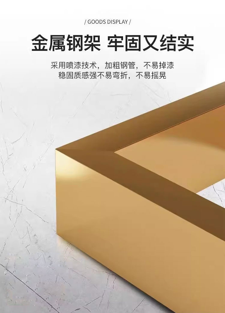 材质:中花白大理石面 / 岩板+不锈钢镀钛金架