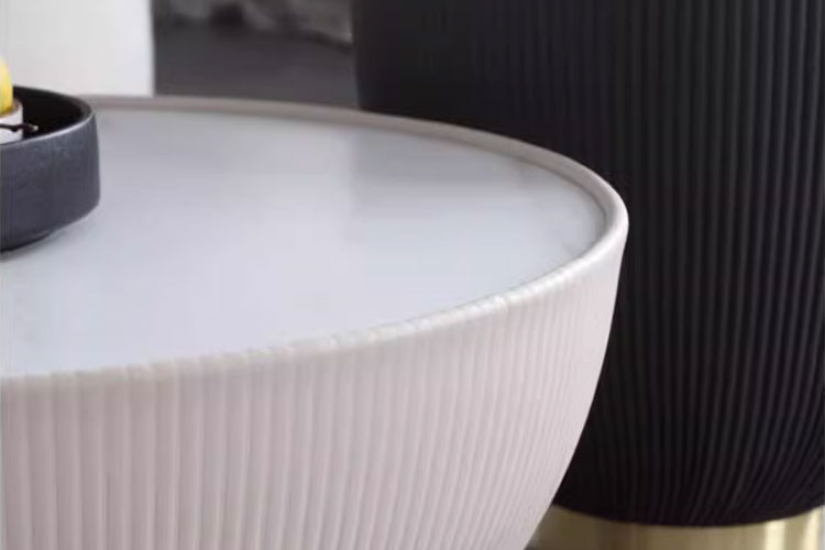 哑光岩板面+一体成型铁桶+西皮压条纹+铁电镀沙金
