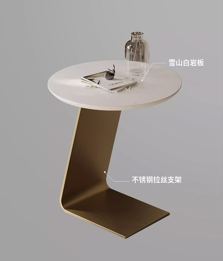 亮面雪山白岩板台面 +8毫米实心钢板,电镀古铜拉