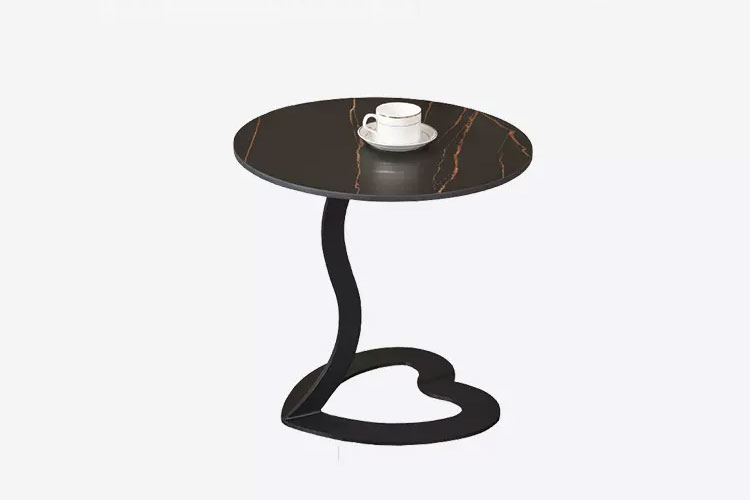 亮面雪山白岩板面+桌架:优质喷涂黑色架子
