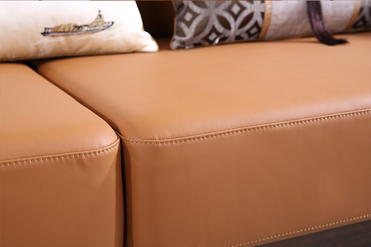 真表层:选用优质意大利“江华”牛皮覆面,厚度1.3-1.5mm,撕裂强求度>35N/mm,断裂伸长率<80%,颜色摩擦牢度>4.5/3.5(干/湿);
