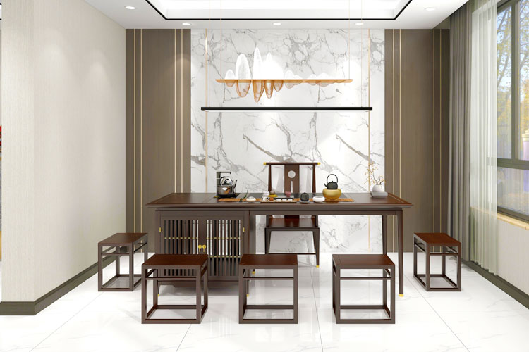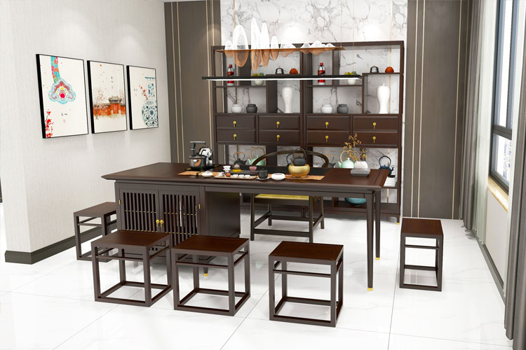 - JH01茶台,新中式实木茶台乌金木两米茶台实木茶台
