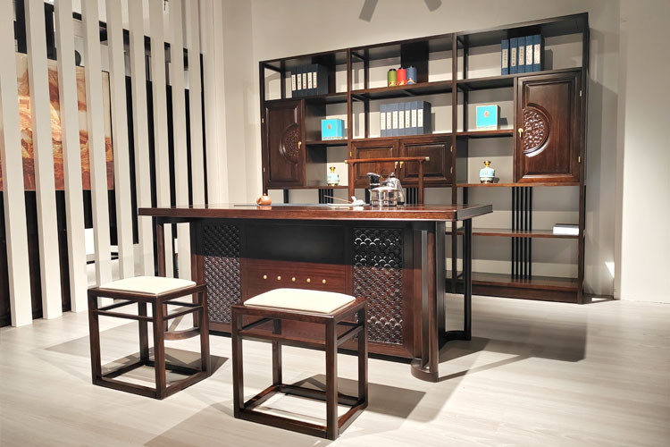 - JH01茶台,新中式实木茶台乌金木两米茶台实木茶台