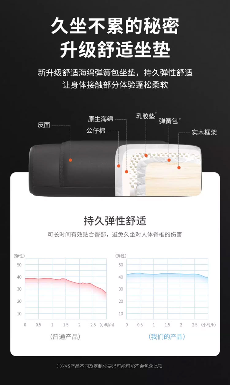 海绵:40密度高回弹发泡成型海绵,曲度依照人体工程学背部曲线设计,力求高标准的舒适性,密度好,回弹力强 ;